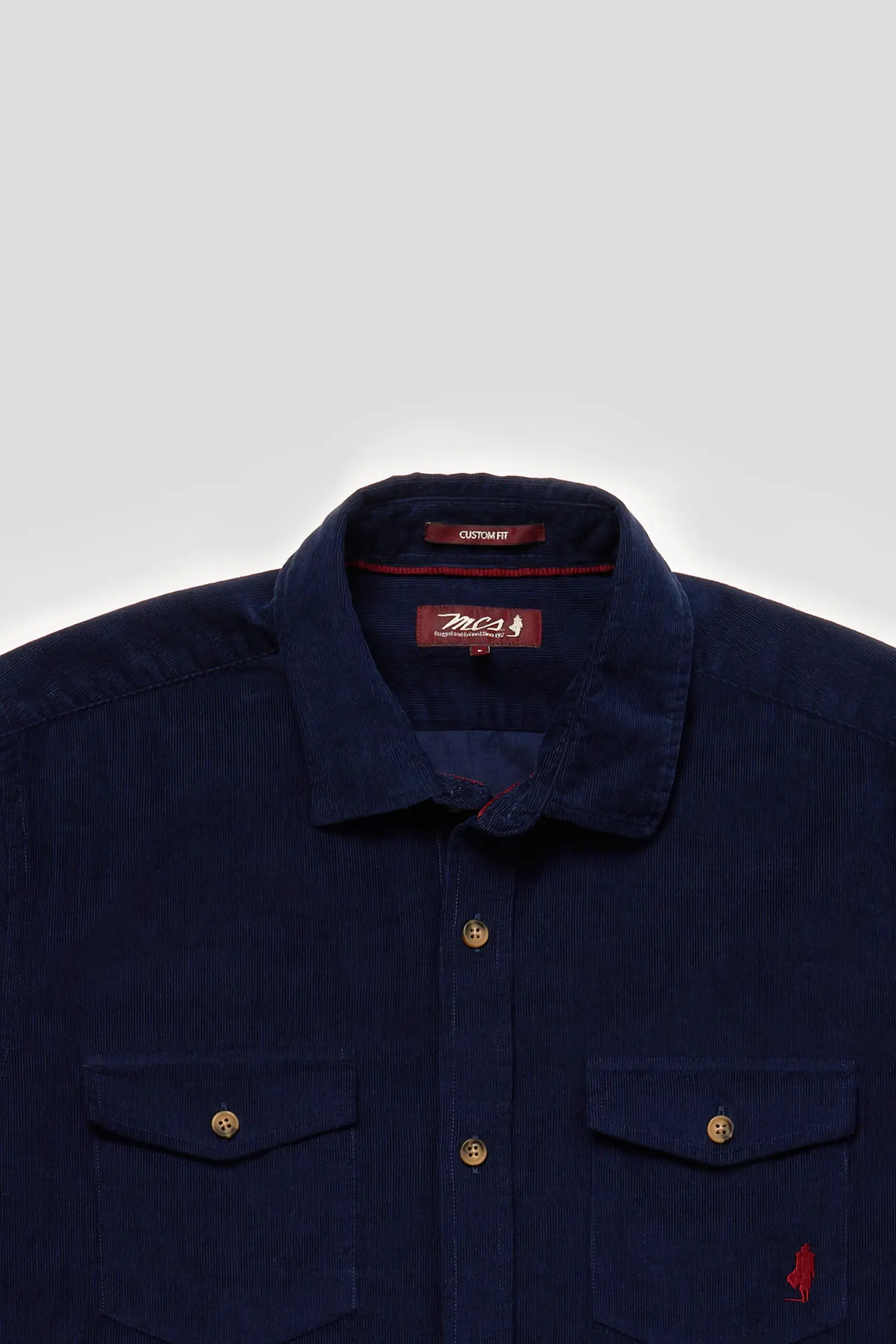 Chemise unie velours côtelé deux poches Bleu marine – MCS