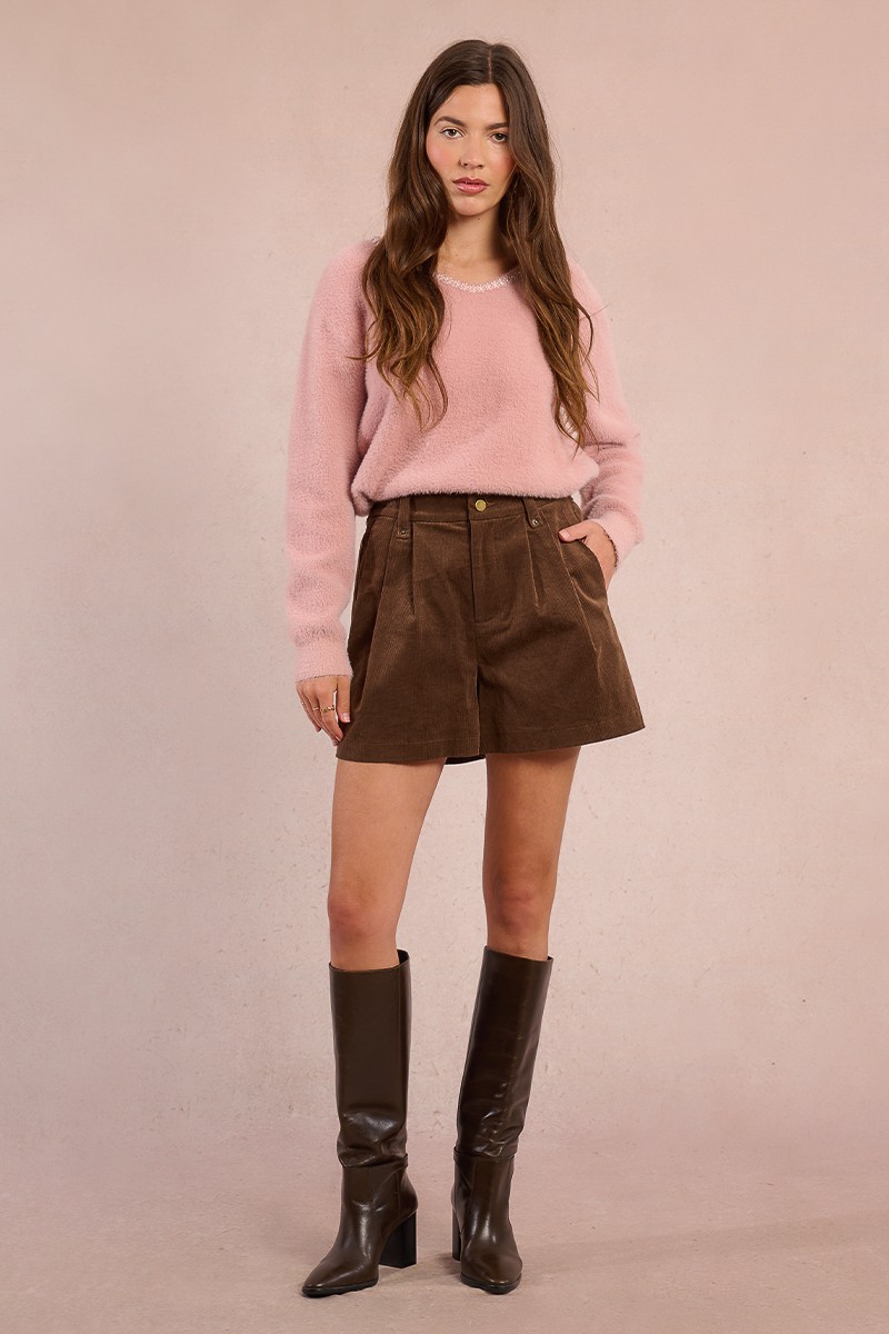 ‘-Short taille haute en velours